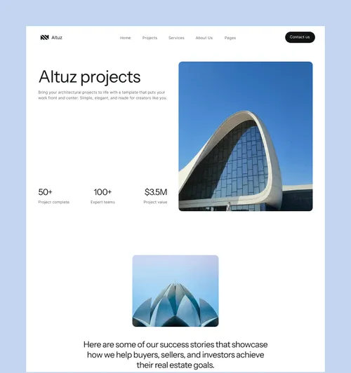Altuz Webflow Template includes over 12 pages in total, with more than 25 sections.